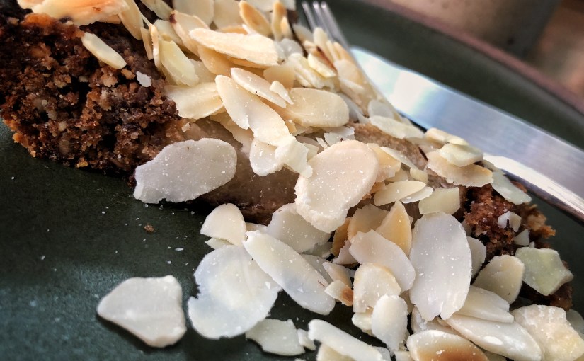 7-8 dakika daha pişirin; badem dilimleri hafif kizaracaktir, kekin ortasina kürdan sokup çikarinca temiz çikmali
